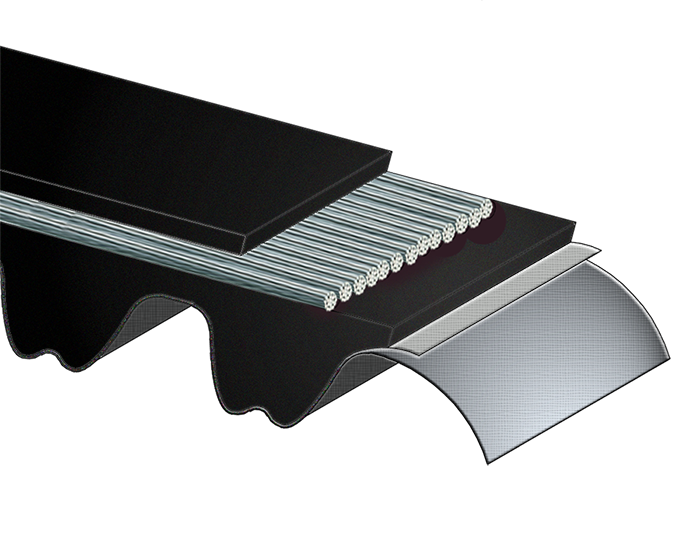 HNBR Elastomer uniquely cross-linked to increase tooth rigidity & durability.