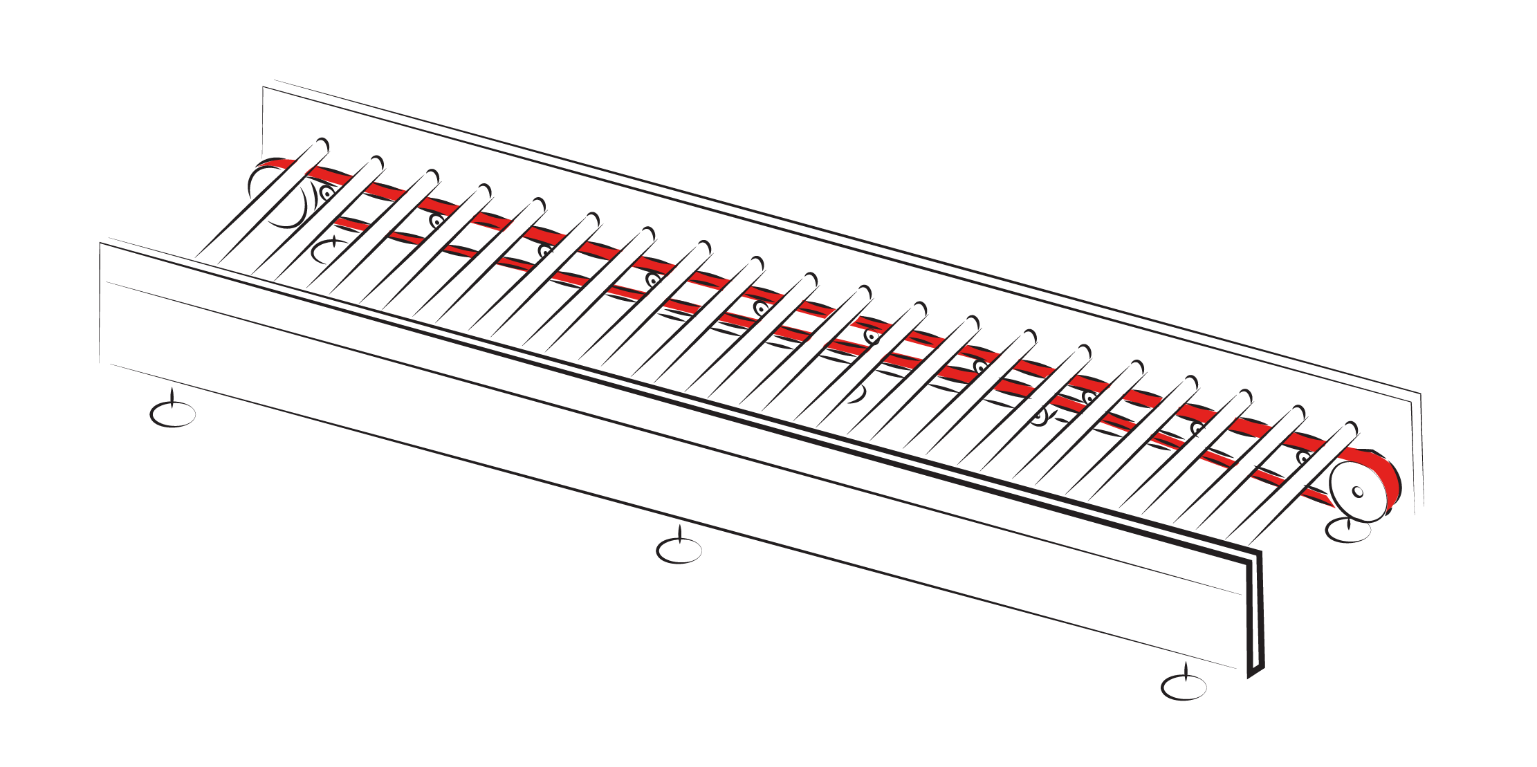 - Customized with special covers used to divert goods 90° from the starting direction of travel.