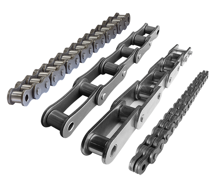 ANSI roller chain – standard, heavy duty, cottered, cottered heavy duty, straight side plate, extended pin, stainless steel, nickel plated, zinc plated, double pitch (including extended pin, hollow pin) and specials.