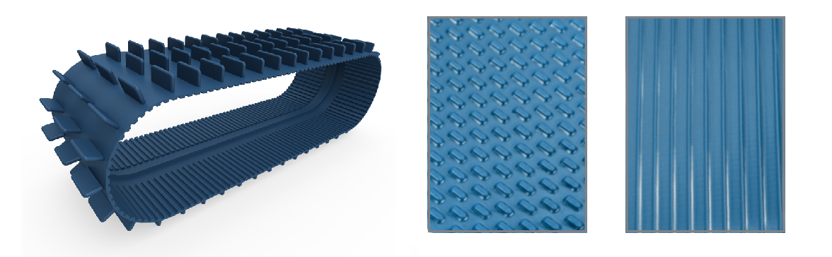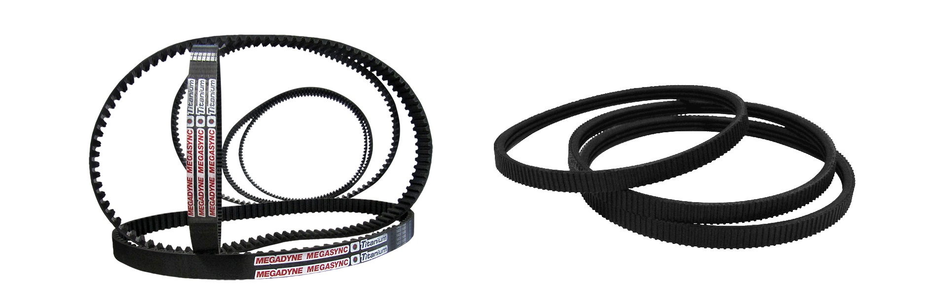 The recent developments of Megadyne, the MEGASYNC™ Titanium and Megadyne Rollpower™, use a revolutionary design enabling huge power savings. They were developed to use neither idlers nor lubricants. They also do not require re-tensioning whatsoever. Further, a precision rib design and accumulated sidewall friction eliminate slippage, thus substantially decreasing power consumption.