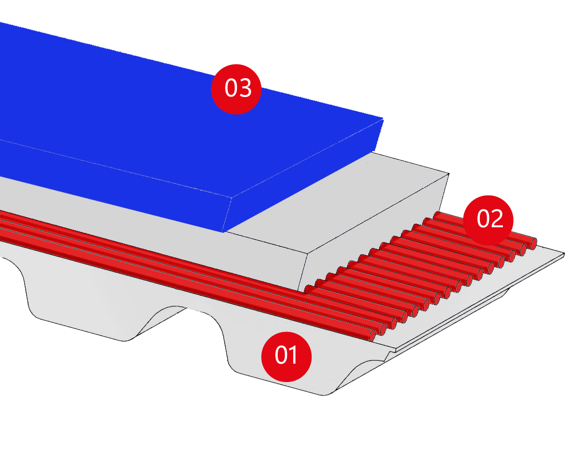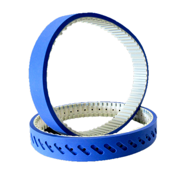 The body of the belts are grey thermoset polyurethane 88 ShA